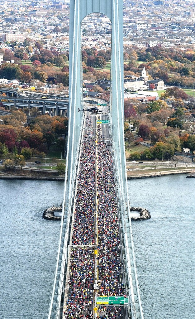 The race starts with a massive climb over the Verrazano Straits Bridge which has two tiers with runners on both. One tip for any reader who intends to do NYC in the future. If you are on the lower tier don’t run on the outside edges as it could lead to an unpleasant shower from above as people decide to take a pee over the edge of the top tier!